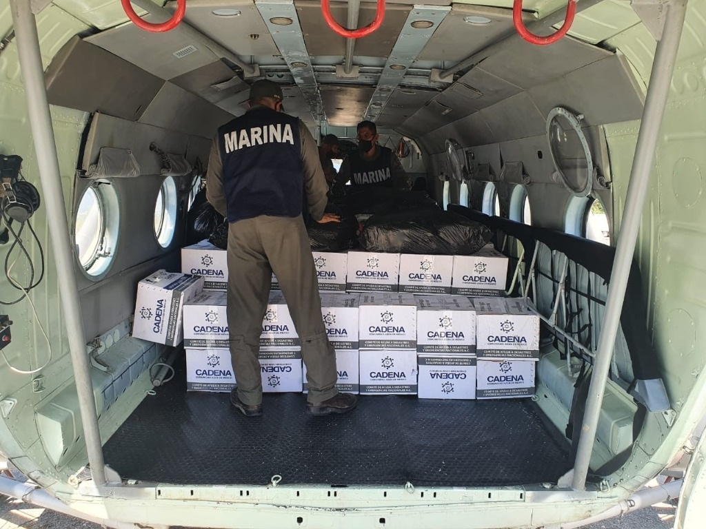 Para el transporte de ayuda humanitaria y personal, se utiliza un helicóptero MI-17, el cual, durante la semana pasada, llevó casi dos toneladas de ayuda humanitaria al poblado de Francisco León, que incluye despensas, agua embotellada y artículos de aseo personal.