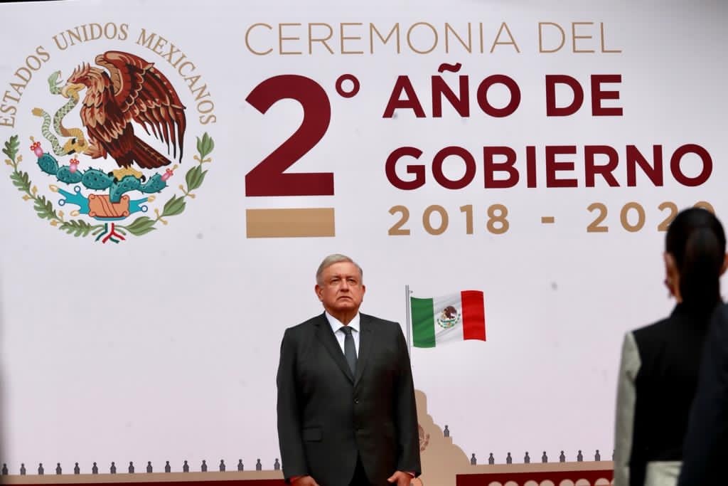 En el patio central del Palacio Nacional, con una reducida cantidad de invitados, López Obrador dijo que “en estos dos años de gobierno, puedo sostener, con hechos y en honor a la verdad, que hemos avanzado en el objetivo de transformar a México. Desde antes de asumir el mandato popular, fuimos elaborando un plan de desarrollo que surgió de muchos años de brega y de recorrer el país a ras de tierra”.