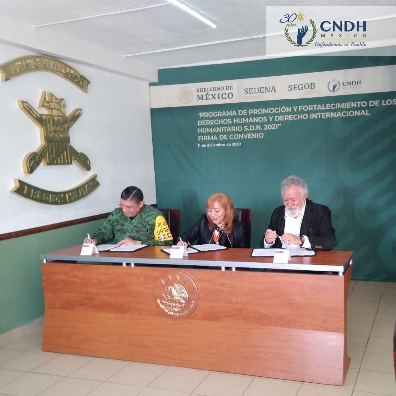 La Comisión Nacional de los Derechos Humanos (CNDH) y la Secretaría de la Defensa Nacional (Sedena) firmaron este viernes un convenio general de colaboración, con el objetivo de fortalecer la capacitación del personal castrense en materia de respeto a las garantías básicas. En la ceremonia estuvieron presentes la ombudsperson Rosario Piedra Ibarra; el titular de la Sedena, general Luis Cresencio Sandoval González, y el subsecretario de Derechos Humanos de la Secretaría de Gobernación, Alejandro Encinas, señaló el organismo público a través de un breve comunicado.