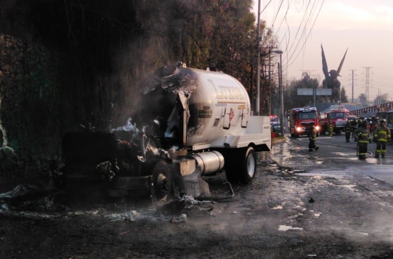Una pipa de la empresa Luxor, cargada con al menos 11 mil litros de gas licuado de petróleo, se incendió en la autopista México-Pachuca con dirección a la Ciudad de México, en un accidente donde la cabina y el motor fueron consumidos por el fuego, pero el contenedor con el hidrocarburo quedó intacto, la mañana de este sábado, sin que hubiera lesionados.