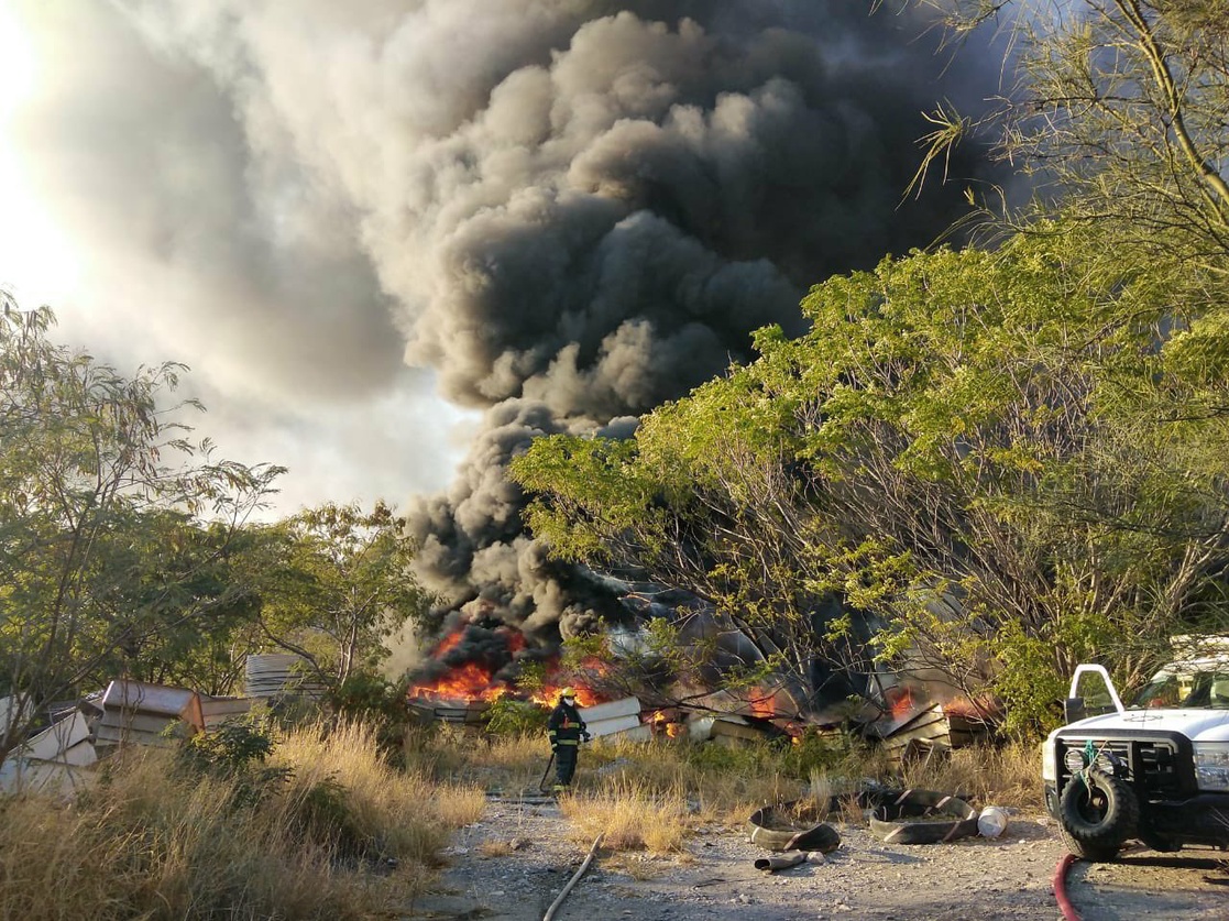 Elementos de Bomberos y Protección Civil del estado combaten desde las 16 horas un fuerte incendio en los límites de Monterrey y San Pedro Garza García.