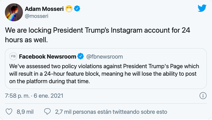 También te puede interesar: Facebook e Instagram bloquearán cuentas de Trump 'indefinidamente'