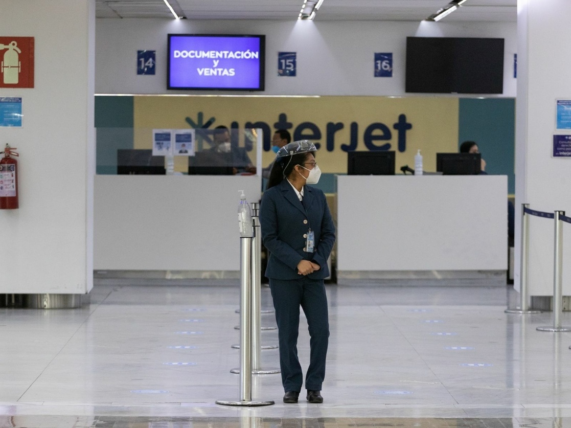 En los mostradores que tiene la aerolínea en la Terminal 1 en el AICM, los trabajadores colocaron las banderas rojinegras en las que se leía "Embargado precautoriamente por los trabajadores de Interjet".