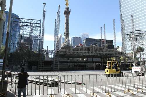 Desde las primeras horas de ayer los carriles centrales de Paseo de la Reforma, entre la glorieta de La Palma y la fuente de la Diana Cazadora, se cerraron a la circulación para montar el escenario donde, a partir de las 19:30 horas, empezará el espectáculo, que conducirá Jorge Muñiz.