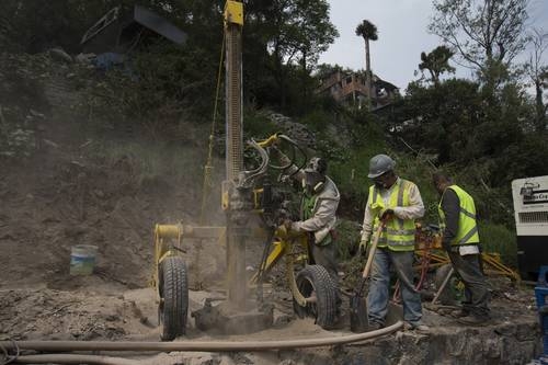Estamos utilizando la misma maquinaria que metimos de forma horizontal, pero ahora de manera vertical, por lo que se realiza una perforación de 17 metros de largo para aflojar la presión, con dos barrenas de 3.5 pulgadas desde arriba, apuntó.