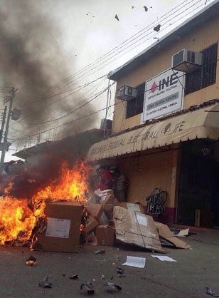 Por otro lado, ‘‘se sustrajeron materiales electorales, incluyendo las boletas correspondientes a 13 casillas del distrito 02, con cabecera en Teotitlán de Flores Magón, cuando el supervisor de la zona las trasladaba para su entrega. Al respecto, queremos enfatizar que ya está en curso el proceso de reimpresión de dichos documentos en Talleres Gráficos’’. Se estima que la afectación oscila entre 6 mil y 8 mil boletas.
