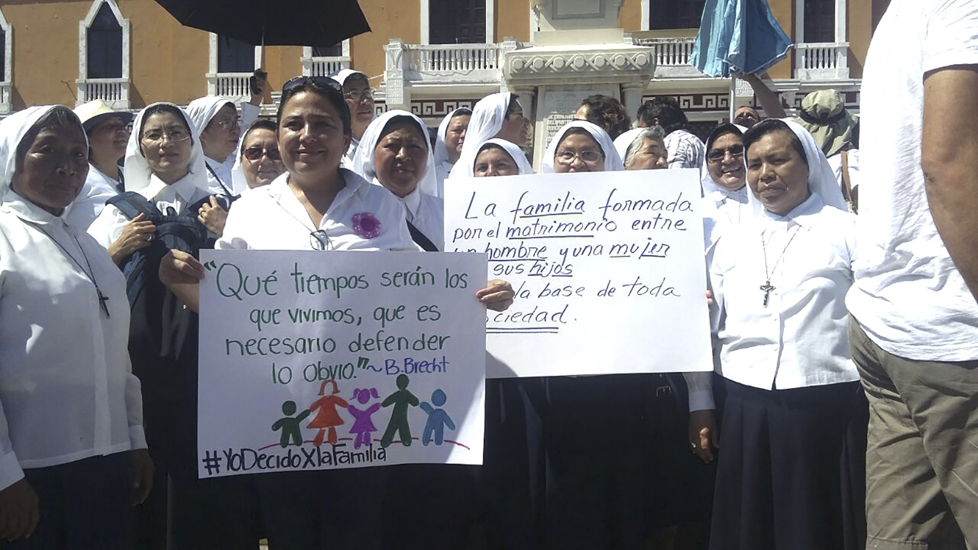 En un folleto que los organizadores repartieron se dice que esta ideología es un sistema de pensamiento impuesto desde el exterior que relativiza la sexualidad. E impreso incluía las porras diseñadas para la ocasión. Una se canta al son de [i]La cucaracha[/i]: “A esta marcha, a esta marcha / nos venimos a juntar / por la familia, el matrimonio / y el derecho de educar”.
