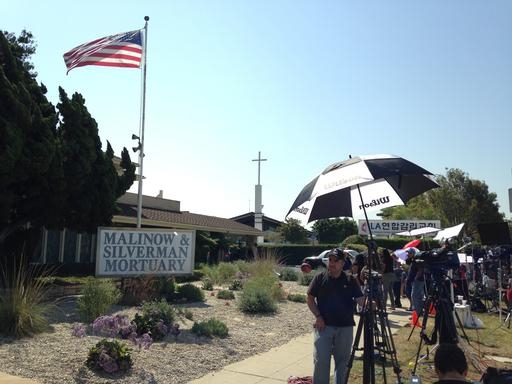 A la funeraria llegó el cónsul de México en Los Ángeles, Carlos García de Alba, y un primo lejano del artista que dijo que venía de México y esperaba reunirse con sus familiares.