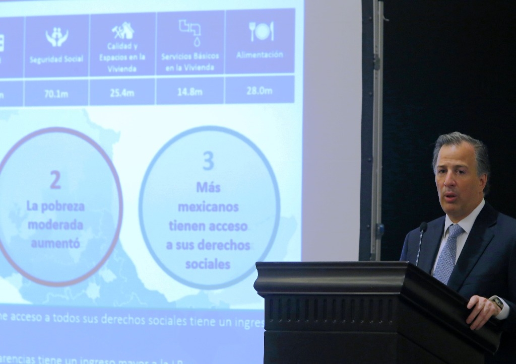 Al referirse a la polémica entre el Instituto Nacional de Estadística y Geografía (Inegi) y el Consejo Nacional de Evaluación de la Política de Desarrollo Social (Coneval), a raíz de los criterios que introdujo recientemente el Inegi para reportar el ingreso de los hogares, Meade señaló que el nuevo indicador ‘‘aterriza más el panorama.