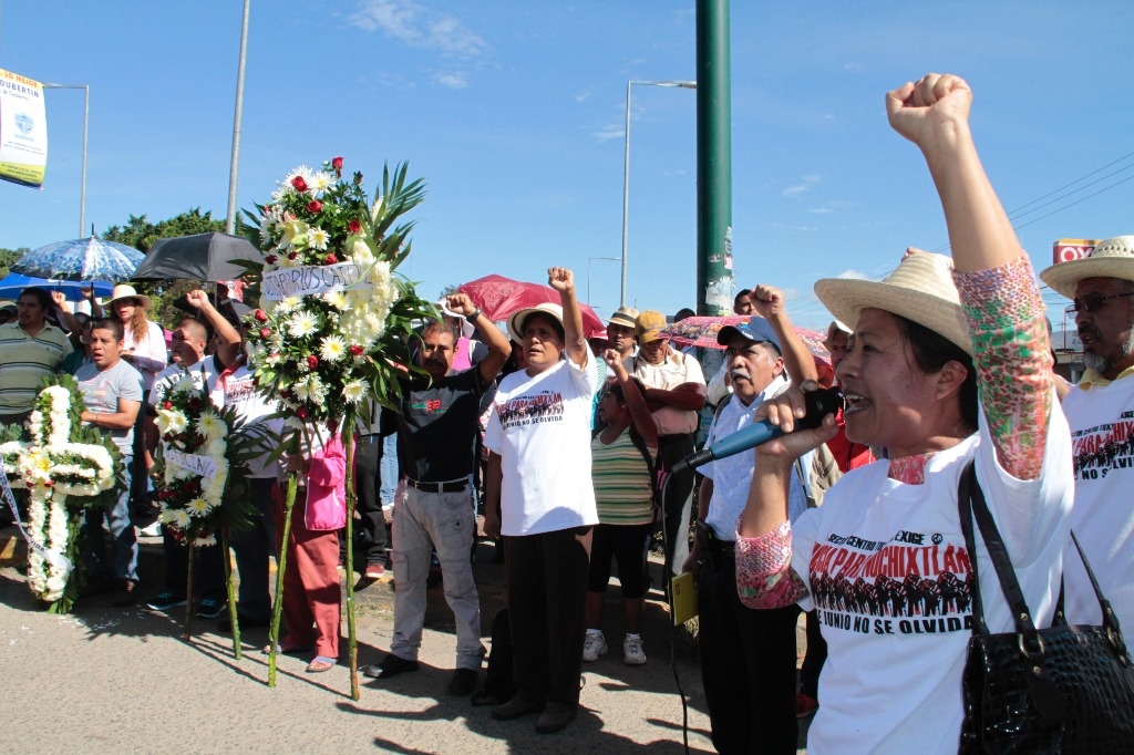 Los maestros, quienes fueron encabezados por la comisión política de la asociación gremial, acusaron a los gobiernos federal y estatal de crear y difundir una nueva "verdad histórica" en la que tratan de inculpar a los habitantes de Asunción Nochixtlán, buscando hacerlos responsables de los hechos ocurridos el pasado 19 de junio.