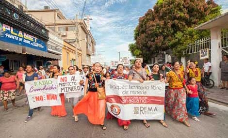 Con la consigna "no a la mina y sí a la vida y territorio", unos 500 habitantes de los 35 barrios de este municipio de la región del Istmo de Tehuantepec marcharon por las principales calles de la localidad en rechazo a la actividad minera.