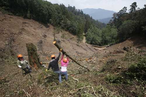 Aquí, las autoridades tradicionales emplean a 42 personas en el trabajo de monte, todos comuneros. De ellos ocho son mujeres. “Se impulsa la equidad de género. Se busca que las mujeres se involucren. Es la primera comunidad que les da trabajo y también participación en las asambleas’’, explica Pedro Martínez, jefe de monte. Laboran a pleno sol, con un casco de protección y lentes oscuros.