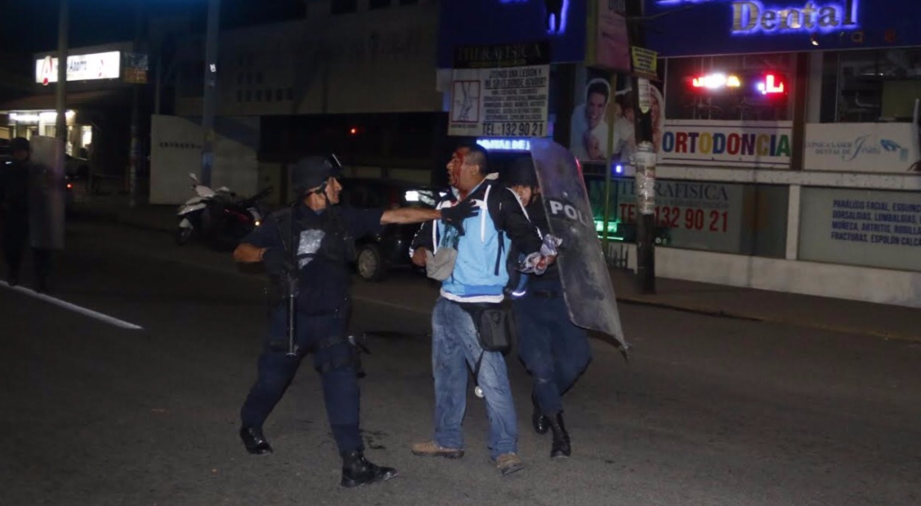 Policias federales y estatales, así como de la gendarmería, se enfrentaron cerca de la medianoche con profesores de la sección 22 de la Coordinadora Nacional de Trabajadores de la Educación y padres de familia, en el bloqueo que éstos mantienen a la altura del acceso principal al puerto de Salina Cruz. En la zona se encuentran más de mil uniformados.