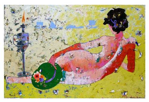 La de Maciel es una pintura emotiva, ya que parte de sus vivencias: “Desde luego muchas cosas las saco de la literatura, la poesía, de mis viajes, pero eso se transmite mediante una emoción. Una vez que tengo la idea clara de lo que deseo hacer, entra la parte emocional, porque en el acto de pintar ya no controlo el pulso, aunque sí la composición –que esto se quede aquí o allá–, pero el resto lo dejo, me vuelco en la tela, sin cortapisas”.