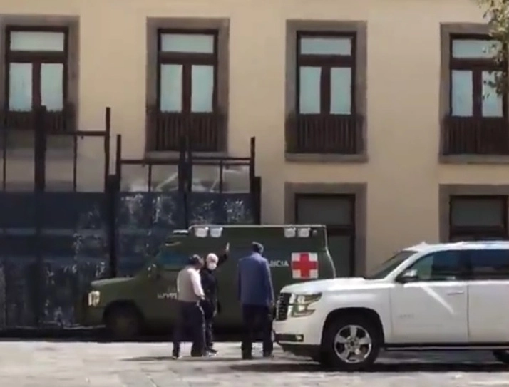 Al fondo del área en la que fue visto el presidente estaban estacionadas una ambulancia del Ejército y una camioneta blanca.