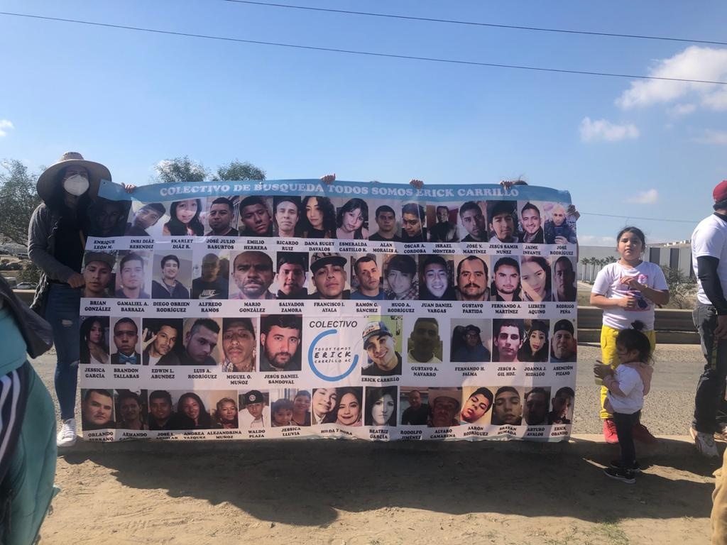 Estuvieron los colectivos de búsqueda, quienes desde muy temprano, llegaron con pancartas y fotos de sus desaparecidos.