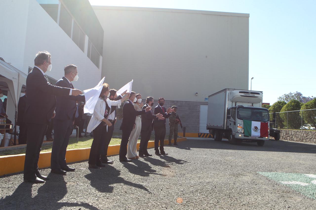 Este lunes salió de la planta de Drugmex, en Querétaro, el primer lote de vacunas contra Covid-19 de la farmacéutica Cansino Biologics envasadas en México, para su distribución en el país.