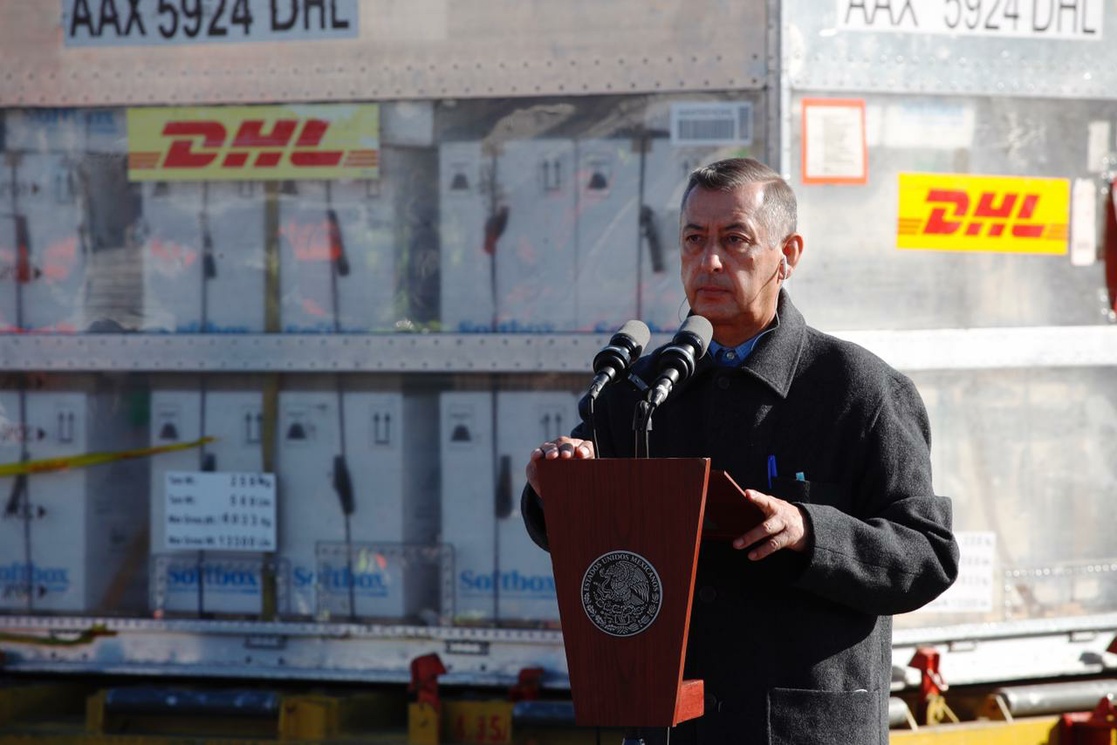 El director general de Laboratorios de Biológicos y Reactivos de México (Birmex), Pedro Zenteno Santaella, recibió esta mañana el doceavo embarque con 487 mil 500 dosis de vacunas contra el Covid-19, elaboradas por la farmacéutica Pfizer-BioNTech, para continuar con la inmunización de adultos mayores.