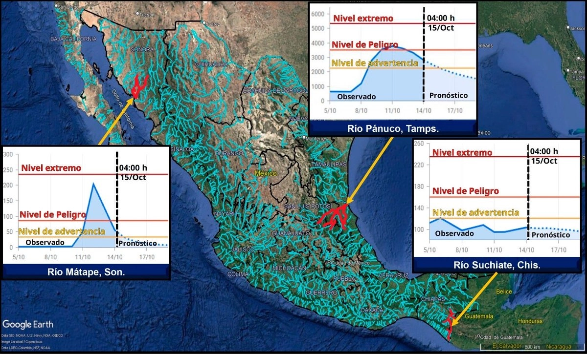 Los afluentes están localizados en Sonora, Tamaulipas y Chiapas