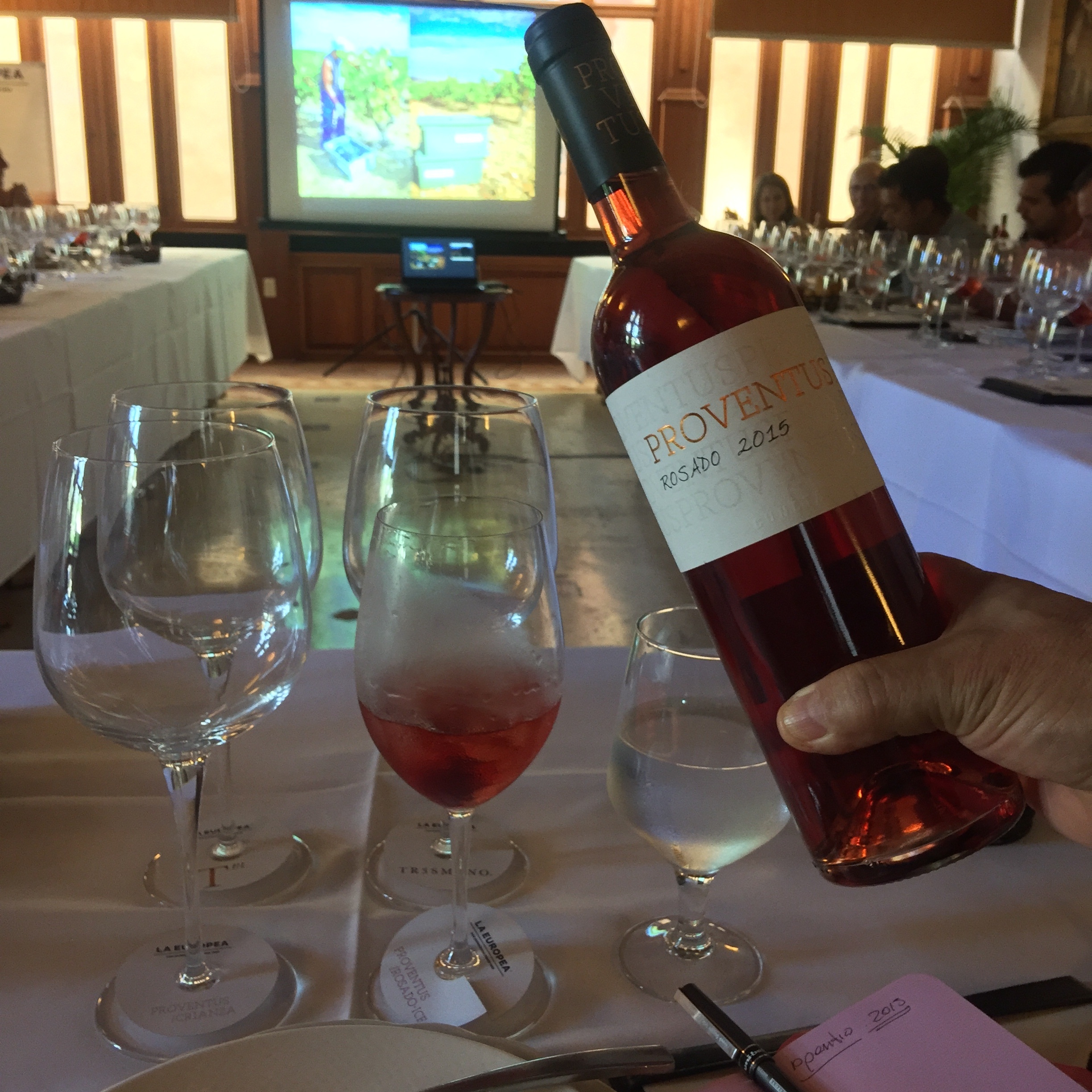 En un encuentro de sabores, el aliento de un rosado seco y fresco, refrescado con hielo (una pequeña frivolidad) ganó más de un aplauso. Se trató de un aperitivo cosecha 2015 de nombre Proventus, que acompañó a un tartar de atún fresco con fresas, ralladura de limón, alcaparras, aceite de oliva y hierbabuena.