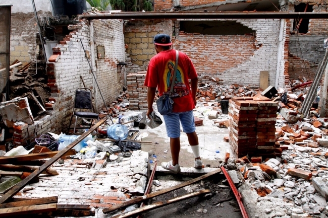 Evacuado de la calle de Chiapas en la Roma, por riesgo de colapso de edificio dañado desde los sismos de 1985, y dejado a su suerte, ahora inclinado a punto de sucumbir y amenazando la casa de varios, entre otros del escribano. En algún momento somos damnificados, algunos así nacieron, otros se convierten en voluntarios rescatistas de la vida y, de paso, de sí mismos.