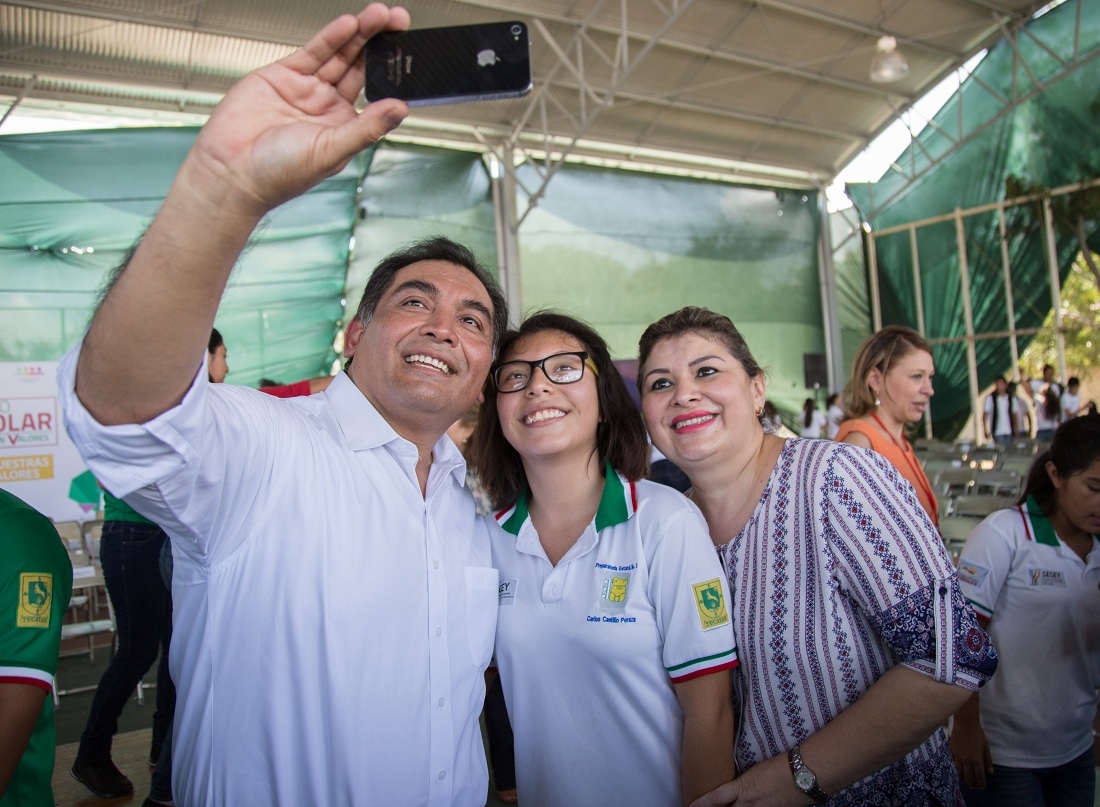 Así, en esta tierra contamos con 90 mil jóvenes dispuestos y preparados a defender a Yucatán. Contamos con 300 grupos de 300 que se están formando en las aulas para tomar el futuro en sus manos. Ellos son los guerreros con los que continuaremos librando las batallas del bienestar y la equidad.