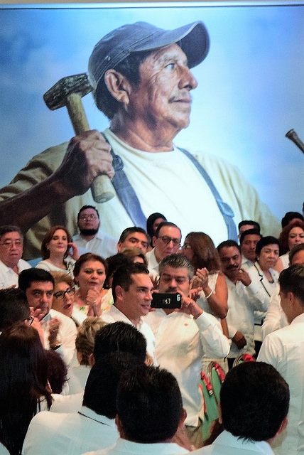 Cuando llega el gobernador se dirige a su familia y en pleno berrinche su hijo se retuerce en los brazos de su madre. El gobernador trata de calmarlo, pero es inútil, así que mejor saluda a los precandidatos; Enrique de la Madrid, Miguel Mancera. Sube al estrado e inicia un discurso donde presume las gestiones millonarias que ha conseguido y el apoyo de prácticamente todo el gabinete, aunque es Osorio Chong quien se lleva el aplausómetro y con ello todo tipo de comentarios y asignaciones para el futuro.