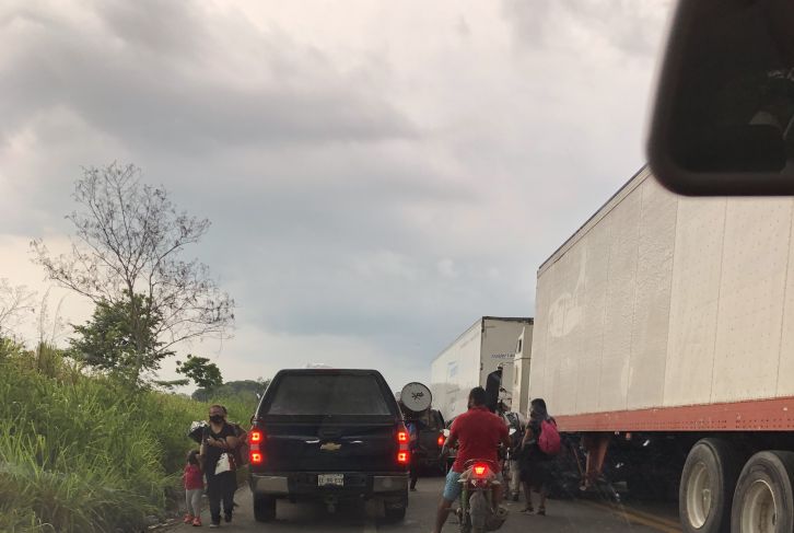 El bloqueo cumplía ya su quinto día. Los habitantes de San Juan Mazatlán Mixe habían cerrado la carretera desde el lunes y desde entonces, después de varias horas, dejaban pasar a cuenta gotas sólo a aquellos que pagan la cuota respectiva: 500 pesos los automóviles y 1000 pesos los trailers. Mientras tanto, los habitantes de las localidades cercanas que requieren movilizarse por necesidad o alguna emergencia son transportados en motocicletas o en pequeñas unidades (especie de taxis) que también aprovechan para hacer su agosto, transitando entre cientos de vehículos inmóviles. Nunca antes había visto tal cantidad de trailers estacionados de dos en dos, o de tres en tres a lo ancho del asfalto, unos que pretendían llegar a Coatzacoalcos y otros a Salina Cruz, el camino que atraviesa el Istmo de Tehuantepec del Atlántico al Pacífico, que forma parte del Programa Corredor Istmo de Tehuantepec, uno de los proyectos emblemáticos del gobierno del Presidente López Obrador.