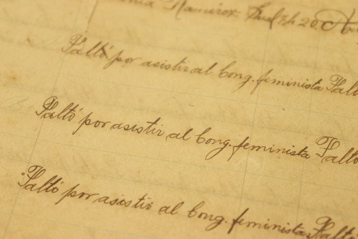¿Por qué es histórico este material? Una de las respuestas está en la lista de asistencia de una escuela en 1916 que contiene firmas de algunas representantes que participaron en el Congreso Feminista. El día del congreso, las maestras escribieron en sus libretas con puño y letra: “Faltó por asistir al Congreso Feminista”, en los nombres de las alumnas ausentes.