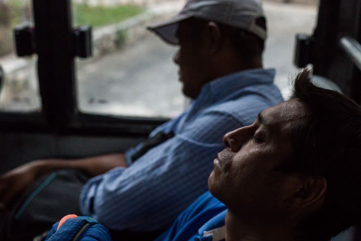 Una voz femenina, que poco a poco se le iba haciendo más familiar, anunció la siguiente parada. Varias personas bajaron, y un número similar ocupó los asientos que dejaron vacíos; tibios nidos ya, que arropaban y transportaban. El ronroneo del motor y la calidez de los primeros rayos de sol lo arrullaron por unos minutos, y cayó en breve, intenso sueño, que ni el más feroz de los baches pudo espantar. En pocos kilómetros revivió momentos felices, guardados desde hace años en cajones escondidos de su memoria. El autobús seguía su ruta; los pasajeros bajaban y subían. Ya el día había despuntado, y despertó cuando el sol le abofeteó el rostro, aún saboreando los recuerdos que le regaló ese pestañeo.