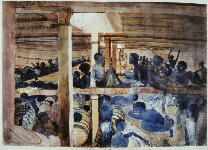 A bordo de ese navío —habitual en la siniestra flota— los varones eran encadenados por parejas, encarcelados como sardinas enlatadas en la cubierta inferior, donde las ratas se contaban por decenas, el aire era caliente y corrompido y se vertían a menudo las tinas donde hacían sus necesidades. El espacio que tenía cada esclavo en el barco era más o menos equivalente al que tiene un cadáver en su ataúd.