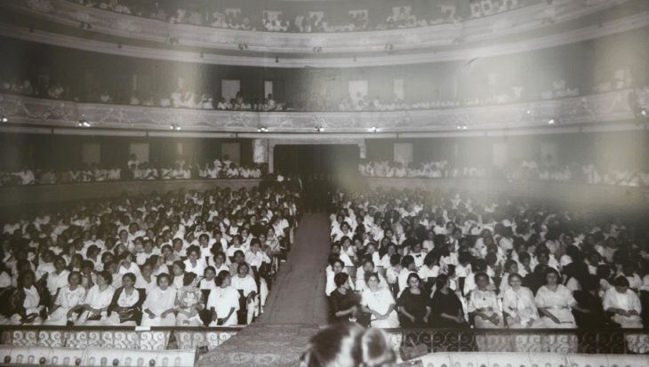 Puedo imaginar esa calle 60 retumbando con el eco de cientos de castañuelas provocadas por los tacones presurosos de mujeres henchidas de preguntas, ilusiones, temores y alegría. Encuentros, en la entrada del teatro, de miradas y sonrisas cómplices, curiosas, gentiles, tímidas, sororas, sin saber que algún día así habrían de llamarse.