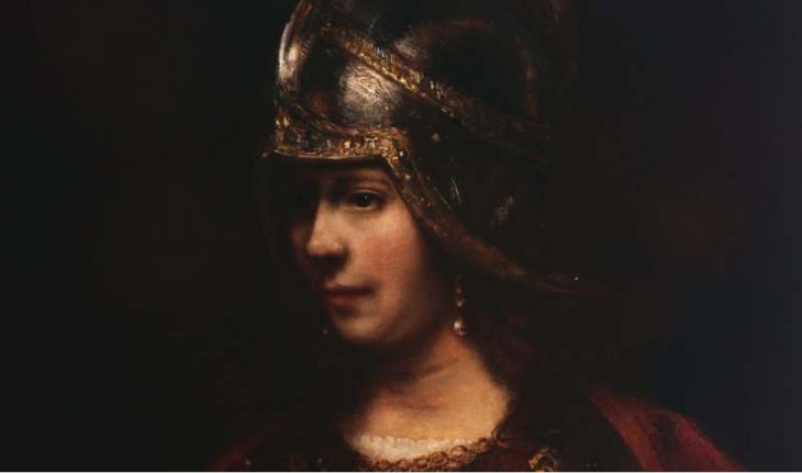 La pequeña exposición tiene como eje el retrato de Palas Atenea, hermoso óleo que pintó Rembrandt van Rijn, el gran maestro holandés del barroco, en 1654. El artista utilizó como modelo a su última compañera sentimental, con quien tuvo una hija fuera del matrimonio, y fue por mucho tiempo su musa principal en muchas obras.