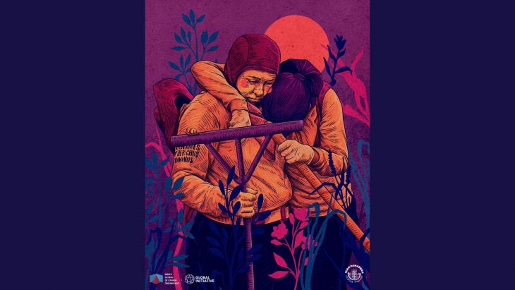 Este relato se espejea con la ilustración realizada por El Dante Aguilera. Juntos trabajamos en colaboración desde hace algunos años y nos inspiramos con movimientos sociales que nos trastocan y con quienes caminamos. En esta ocasión miramos hacia la lucha cotidiana de las rastreadoras en Sinaloa, México. Este trabajo fue realizado para Global Organized Crime Index y Global Initiative Against Transnational Organized Crime (GITOC)