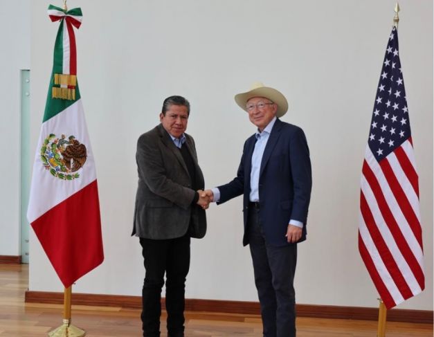 El representante de la Casa Blanca en México, en un encuentro a puerta cerrada convocado por el mandatario estatal y al cual acudieron integrantes del gobierno local, líderes empresariales y jerarcas eclesiásticos, informó que la colaboración acordada ya empezó, concretamente en asesorías a la Fiscalía Genera de Justicia de Zacatecas para el combate al lavado de dinero y el secuestro, y que tiene como perspectiva trabajar juntos en áreas como el combate al fentanilo, el tráfico de personas y la creación de una seguridad compartida entre México y Estados Unidos.