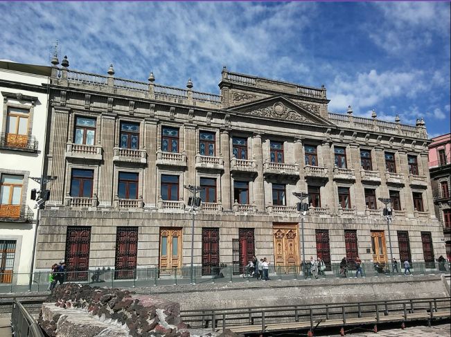 Justo enfrente del Templo Mayor, en la calle de Argentina esquina con Donceles, se yergue imponente un elegante palacio en estilo neoclásico, obra de Manuel Tolsá, el notable arquitecto y escultor, autor de El Caballito y el Palacio de Minería.