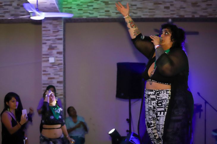 Al día siguiente, en el salón donde será el concierto, recuerdo esas peculiares formas que me parecen profundamente admirables de las colectivas feministas, todas se conocen en el evento y algunas saludan a las artistas con familiaridad, no solo se han encontrado antes, sino que construyen nuevas maneras de ser con las voces que las inspiran. Una chica me cuenta de que es fan de hueso colorado de Audry y la ve cada que puede, al punto en que me confiesa que hasta quiere armar un club de fans. Esta energía asociada a la voz de Audry me recordó a una amiga mía de Teocelo, Veracruz, que, aunque no muy aficionada al rap se volvió amante de la lírica de Audry a raíz de escucharla en un encuentro de mujeres en Chiapas.
