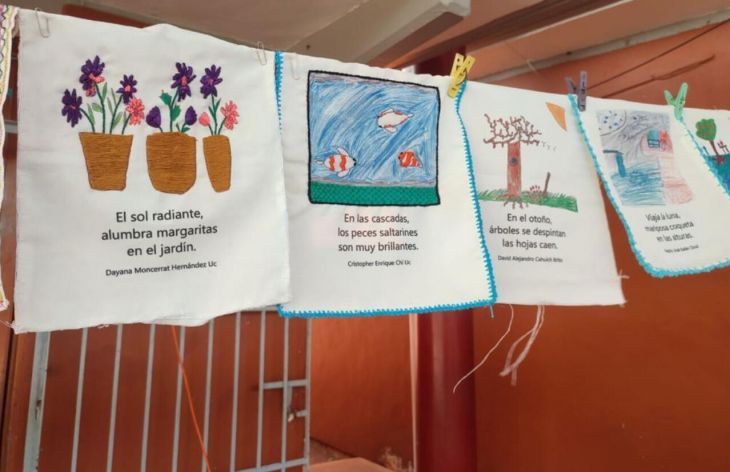 Los afortunados fueron niñas y niños de quinto y sexto grado, de las escuelas primarias: Campeche, de Becal; Francisco I. Madero, de Nunkiní; Pedro Pablo Arcila, de Calkiní; y Venustiano Carranza, de Dzibalché, quienes, como menciona en la contra portada del libro: “revelan la imagen fugaz que regala cada texto poético”. Después de escribir los haikus, les pidió los dibujaran y bordaran el dibujo para enmarcar. Los chiquitos detuvieron su prisa y se asomaron a su interior para recrearse. Los padres de familia descubrieron hijos desconocidos y conocieron el orgullo de saberse parte.