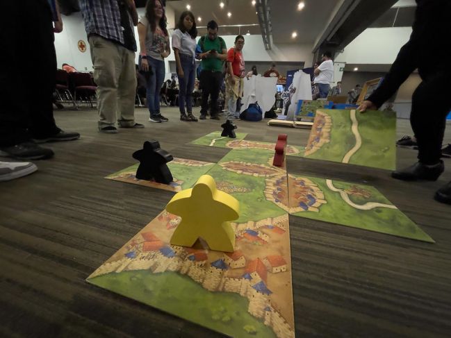 Creo que muchas de las personas que lean estos textos podrán estar familiarizadas con la imagen de una feria o una expo, mucha gente hablando, una cantidad moderada de ruido, e inclusive una sensación detrás de la oreja como si te susurraran muchas personas o fuese demasiado ruido incidental. Cuando suceden ciertas actividades más escandalosas, la estridencia y los altos techos, ayudan a que se difumine la línea entre hablar y gritar. Aunque son unas condiciones difíciles para concentrarse, alrededor de 3000 personas en 350 mesas de juego estuvieron dos días, el 15 y 16 de julio, jugando, aprendiendo y enseñando a jugar mientras conversaban en la Mega XP, la convención de juegos de mesa más grande de México.