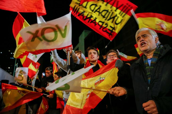 VOX’s platform includes an end to LGBTQ rights, to assisted dying, women’s rights, and other equality policies. It is rooted in the ideology of former dictator Francisco Franco’s Spain (1939-75) and uses many of the Francoist symbols and fascist slogans.