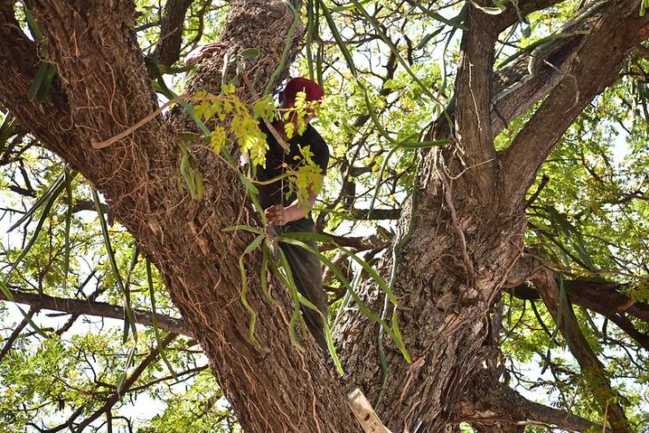 De ahí, un buscavidas que al final encontró la muerte contrabandeó semillas, provocando, siglos después, avenidas consumidas por el fuego perenne. Era robarse el fuego, como Prometeo, o robarse la inmensidad de los baobabs. Delonix regia, susurra, que no sólo araña al cielo con sus llamas sino también taladra la tierra con sus raíces: árbol que escarba para beber magma.