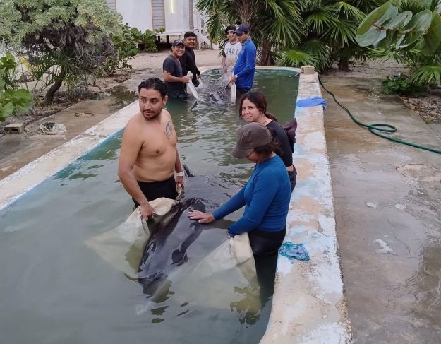 Hablemos de los dos especímenes adultos de delfines que se vararon en la costa de Telchac el pasado 8 de enero, los cuales fueron manejados, nuevamente con “buena voluntad” pero sin capacitación, ni infraestructura adecuada para llevar a cabo su transporte de Telchac a Dzilam de Bravo.