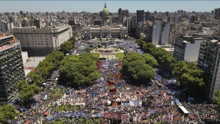 Cientos de miles de personas salieron a las calles en las principales ciudades de Argentina en rechazo a la “terapia de shock” que el presidente Javier Milei pretende aplicar con el supuesto propósito de controlar la inflación y desregular todos los ámbitos de la economía. La concurrencia a los actos de ayer y las protestas que se han sucedido de manera ininterrumpida desde que el asistente a tertulias televisivas devino presidente ponen en duda la viabilidad de un gobierno al que le han bastado menos de dos meses para traicionar casi todas sus promesas de campaña. En el contexto de la primera huelga general convocada por las centrales sindicales durante el gobierno de este extremista neoliberal, los ciudadanos expresaron su malestar con una serie de medidas que en sólo 45 días han empobrecido a las mayorías, coartado libertades fundamentales, convertido en prohibitivos derechos como la vivienda o la salud, disparado la corrupción, favorecido a un puñado de magnates y llevado al país al borde del abismo financiero y social.