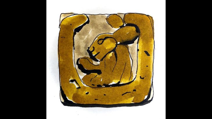 El conejo, representado en la posición humana de cuclillas, parece sostener algo en su pata derecha, como si estuviera escribiendo. Esto cobra sentido dado que hay varias representaciones en vasijas y códices mayas donde los conejos personifican escribas, algunas incluso muestran el pergamino, la pluma y el tintero que utilizan para "escribir". El conejo en la Luna también simboliza la fertilidad y se asocia con Ixchel, la Diosa madre de la creación maya; ella, junto con el Dios principal Itzamná forman la pareja divina de la cual nacieron todos los dioses y la humanidad.