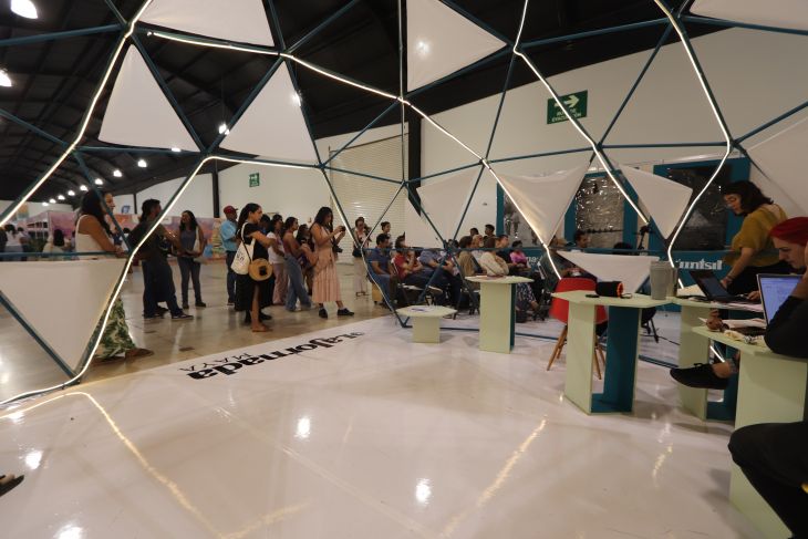 Al sumarnos a la fiesta a veces desincorporamos de la mirada todos los esfuerzos que hay detrás. Este es un texto de agradecimiento a todos esos esfuerzos de quienes hicieron del espacio de La Jornada Maya en la Filey una gran fiesta de la diversidad. La cúpula se llenó de voces y de vida desde el primer día de la feria, pero para quien no se lo ha imaginado, el equipo de montaje estuvo sudando la gota gorda para construir la caja de resonancia en forma de cúpula desde tres días antes.