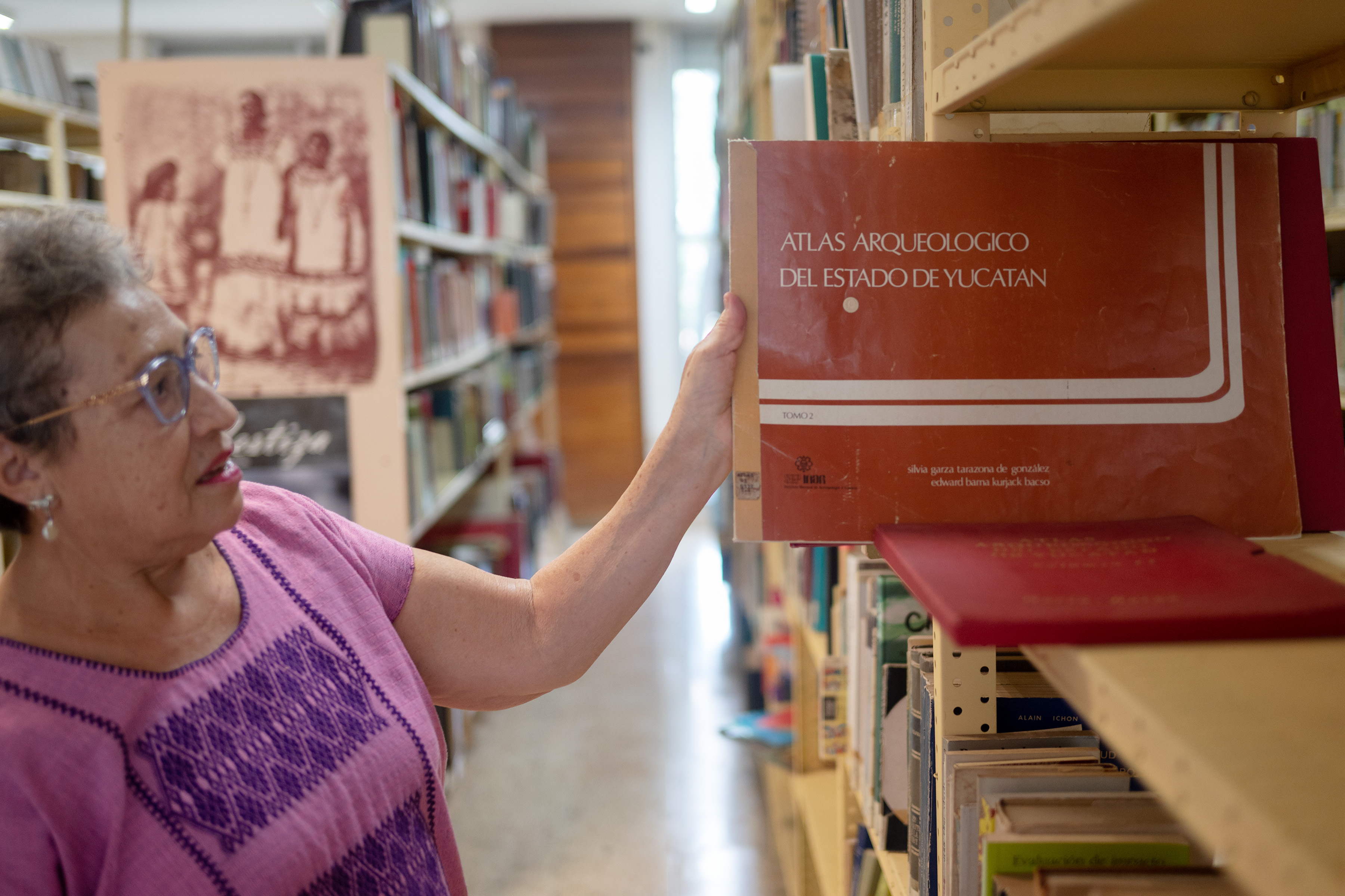 Rodeada de libros, catálogos, mapas, archivos, revistas y de todo tipo de artilugios contenedores de conocimiento antropológico escrito, Blanca Amaya, sonríe detrás de un estante de la Biblioteca del Centro INAH-Yucatán. La palabra impresa sobre lienzos de diferentes edades la acompañan en su labor diaria de bibliotecaria.