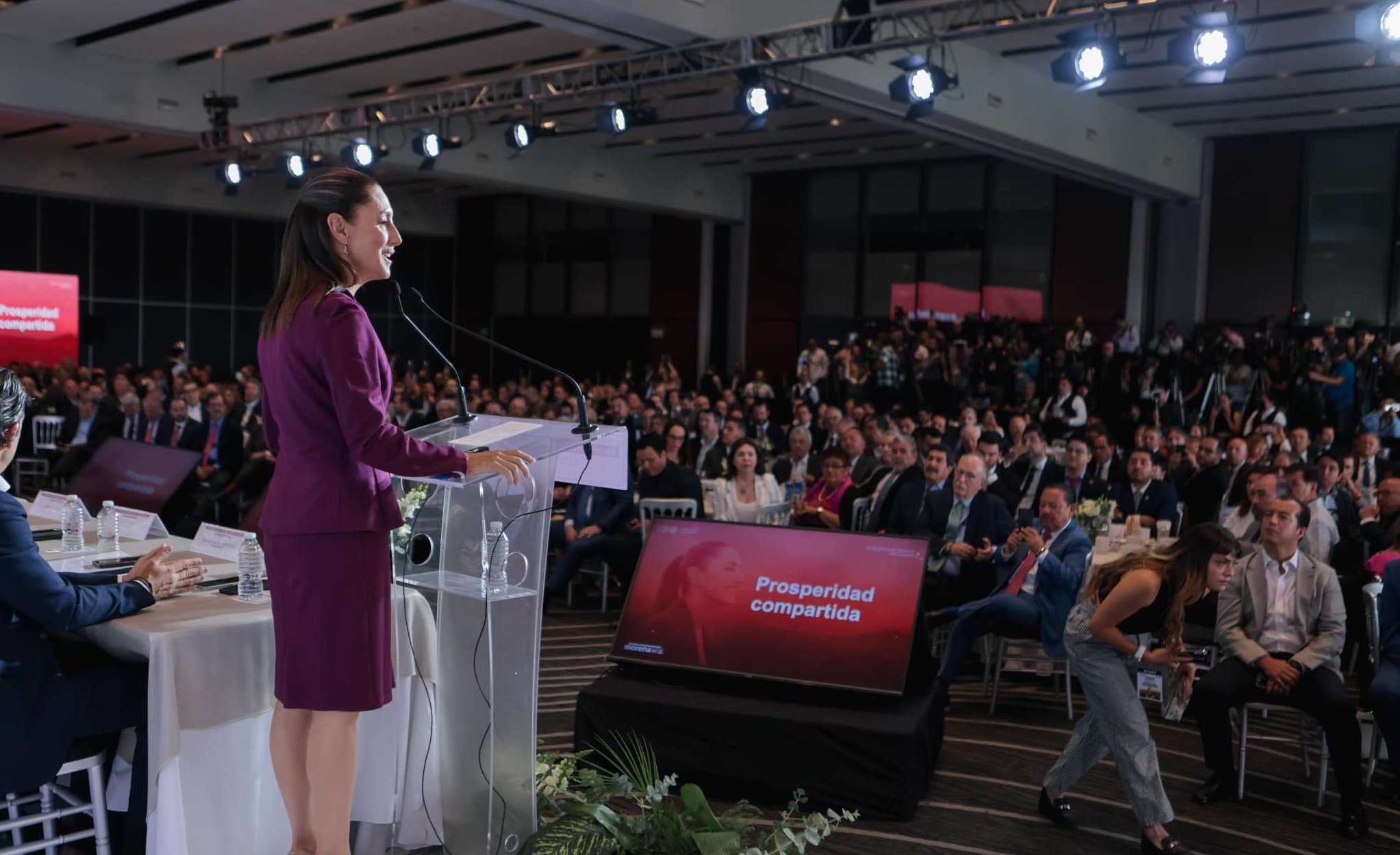 El sector privado está con la candidata a la Presidencia de la República, Claudia Sheinbaum, se congregó a escuchar su programa Prosperidad Compartida. Abarca todos los ámbitos de la actividad económica y financiera, desde salarios hasta fuentes de energía alternas. Asistieron los presidentes de las siguientes organizaciones: Francisco Cervantes, del Consejo Coordinador Empresarial; Carlos García, de la Cámara Americana de Comercio; Juan Cortina, de la Comisión Nacional Agropecuaria; Juan Patricio Riveroll, de la Asociación Mexicana de Instituciones de Seguros; Gina Díez Barroso, consejera de Dalia Empower; María Ariza, directora general de la Bolsa Institucional de Valores; Carla Suárez, directora general de Xignux, y Karen Flores, directora general de la Cámara Nacional Minera.
