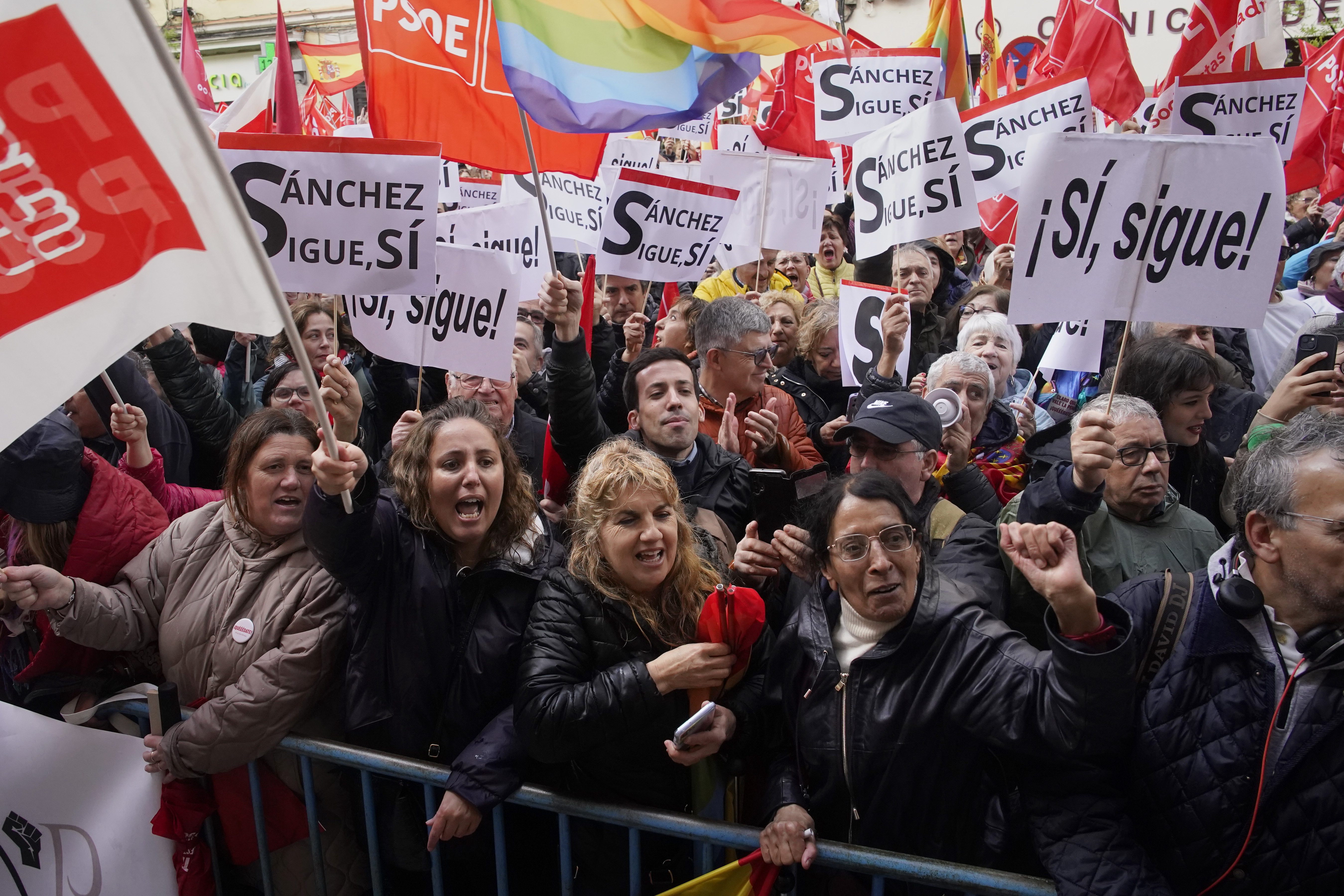 Miles de simpatizantes del Partido Socialista Obrero Español (PSOE) respondieron a la convocatoria de esa formación para manifestar su respaldo al presidente de España, Pedro Sánchez. El miércoles pasado, el mandatario publicó una misiva en la cual denota su hartazgo y frustración con la campaña permanente de las derechas para descarrilar su gobierno, cuyo último episodio fue una denuncia penal contra su esposa, Begoña Gómez, por supuesto tráfico de influencias. Al respecto, el dirigente socialista expresó que no es ingenuo: tiene claro que la causa no tiene nada que ver con los actos de ella, sino con el hecho de que es su esposa.