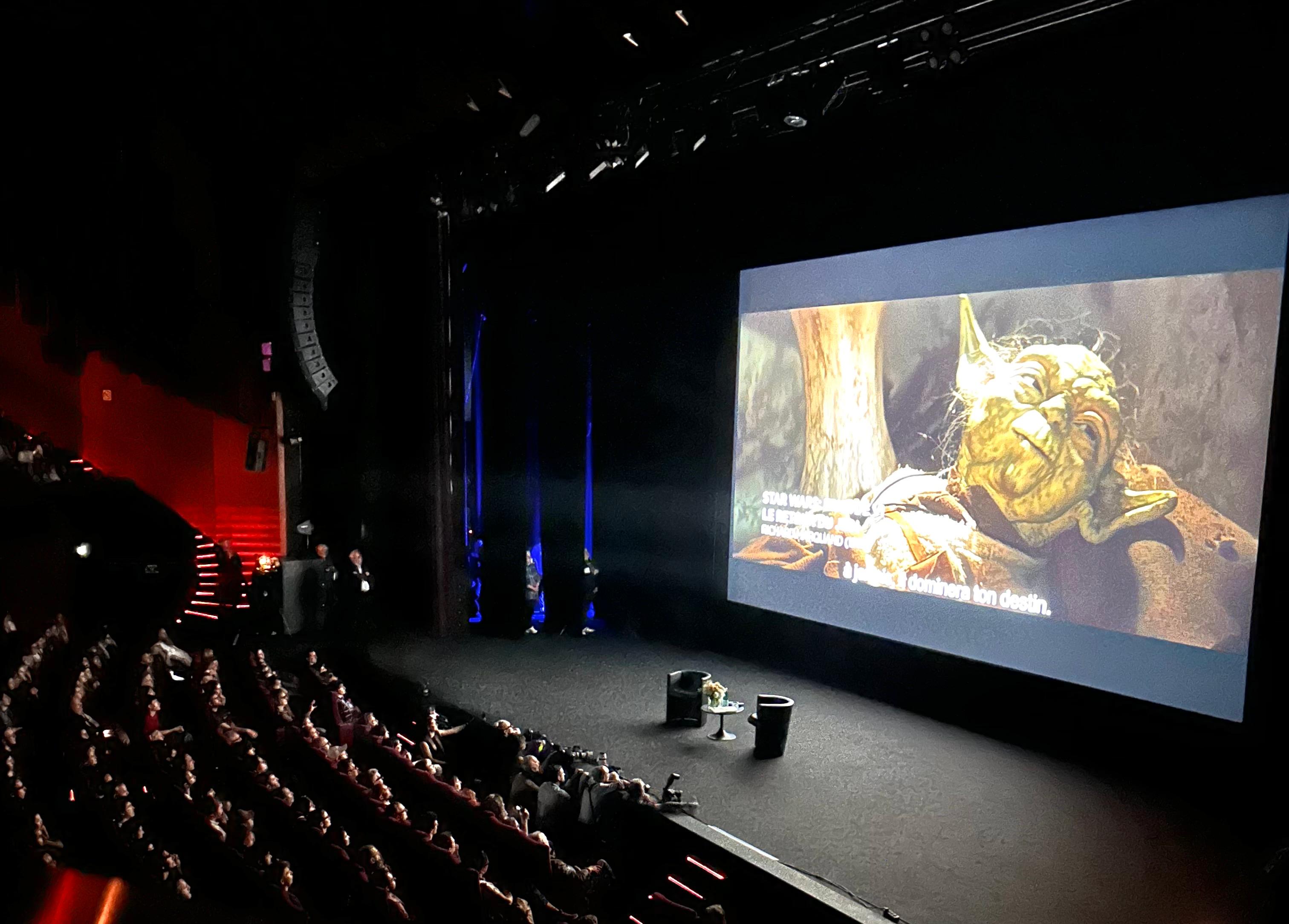 George Lucas luce su edad y se ve colosal. Es alguien que ya es inmortal y no tiene nada que probar ni necesidad alguna de presumir. Así, mientras se hace la introducción de su entrevista honorífica en el Festival de Cannes y se presentan en pantalla una selección de imágenes de sus películas clave, uno puede verlo -con un poco de suerte de espectador- oculto tras bambalinas, en la segunda cortina del telón, con sus tenis blancos, camisa de manga corta a cuadros y su barba y pelo completamente canos. Parece un espectador adolescente maravillado con las imágenes, increíblemente clandestino y muy discreto en un escenario que en realidad le pertenece. Brillan sus rasos zapatos deportivos -fuera de todo protocolo en Cannes- con Darth Vader en la pantalla, destacan sus brazos cruzados con sencillez mientras en cámara estalla la Estrella de la Muerte. La luz brilla curiosamente sobre él cuando Yoda ocupa el primer cuadro de la producción o los AT-AT atacan instalaciones rebeldes. El director no se vanagloria de sus creaciones, las observa con cierto pudor a pesar de ser una de las fuentes inspiradoras de los nuevos monstruos de la cultura pop.