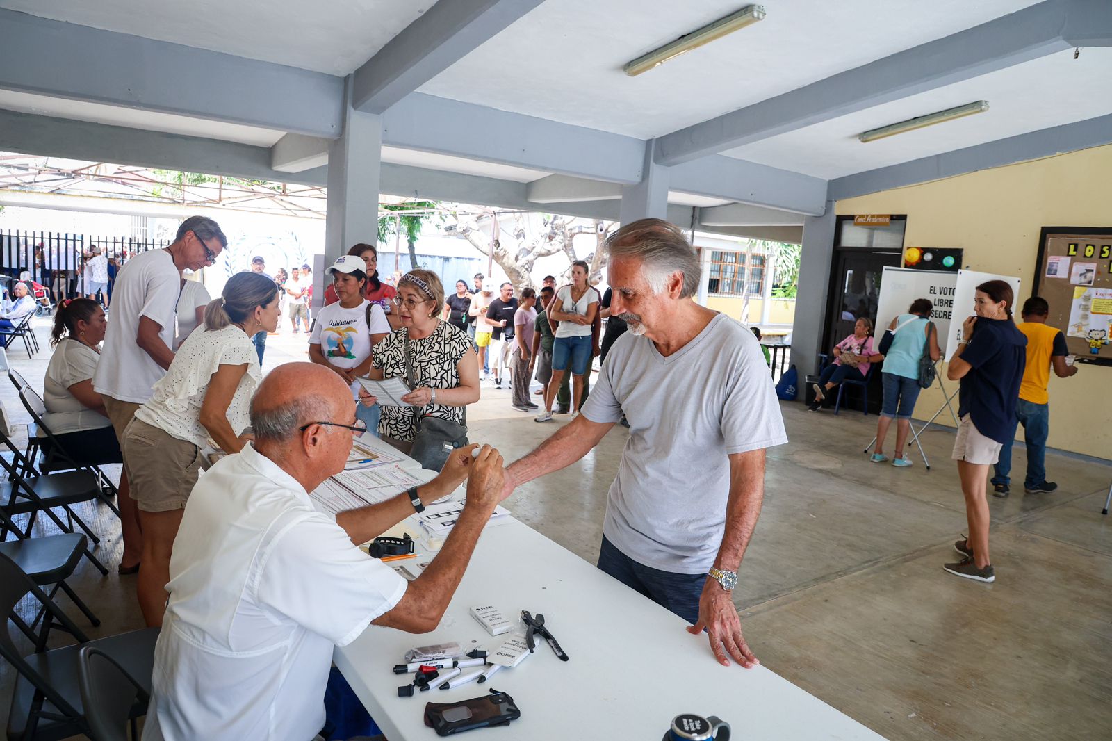 Después de olas de gritos pidiendo que abran la casilla, lo hicieron poco después de las 9 horas. Muchos, demasiados, se arremolinaron en la entrada tratando de llegar primero a cada subsección, sin respetar la cola. No había autoridad para manejar la situación. El sol ya estaba fuerte.